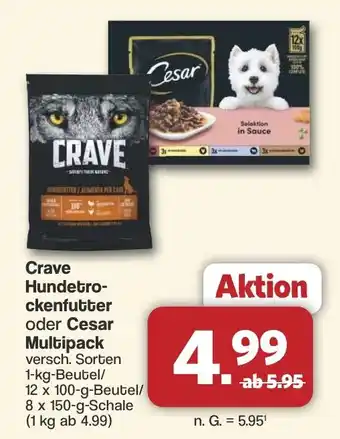 Crave Hundetrockenfutter oder Cesar Multipack 1 kg/12*100g/8*150g