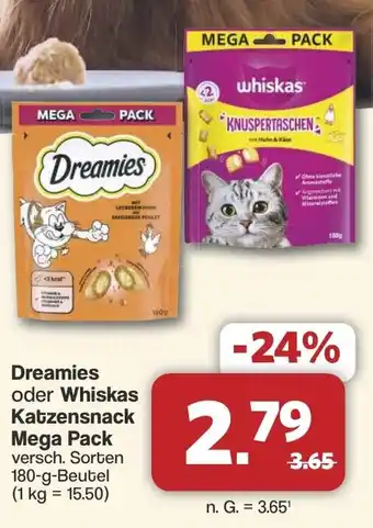 Dreamies oder Whiskas Katzensnack Mega Pack Angebote und Online Aktionen direkt aus dem aktuellen Famila Nord West Angebot