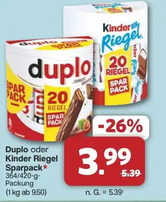 Duplo oder Kinder Riegel Sparpack 364-420 g