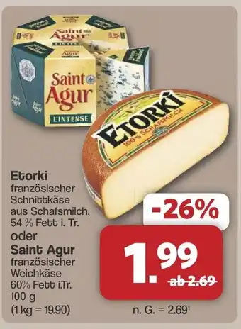 Etorki französischer Schnittkäse aus Schafsmilch, 54% Fett i. Tr. oder Saint Agur französischer Weichkäse 60% Fett i.Tr.