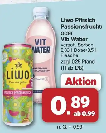 Liwo Pfirsich Passionsfrucht oder Vit Water Aktion bei Famila Nord West
