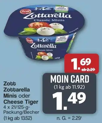 Zott Zottarella Minis oder Cheese Tiger 4 x 21/125-g
