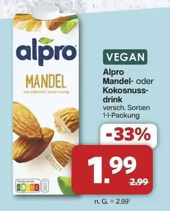 Jetzt im Angebot bei Famila Nord Ost: Alpro Mandel- oder Kokosnussdrink ✅ Aktion gültig vom 29-12 bis 3-01.