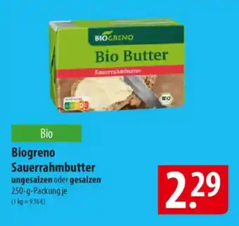 Jetzt im Angebot bei Famila Nord Ost: Biogreno Sauerrahmbutter ungesalzen oder gesalzen ✅ Aktion gültig vom 9-02 bis 14-02.