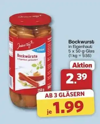 Das Angebot ist in verschiedenen Geschäften erhältlich. Schauen Sie sich alle Produkte an, um das günstigste Bockwurst in Eigenhaut zu ergattern. Wenn Sie gerne nachschauen möchten, ob der Artikel woanders noch günstiger ist, werfen Sie einen Blick auf die Kategorie 'Supermärkte'. Möglicherweise sind diese Angebote auch interessant für Sie: Bockwurst, Bockwurst & Bockwurst.