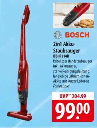 BOSCH 2in1 Akku- Staubsauger BBHF214R Angebote und Aktionen bei Famila Nord Ost