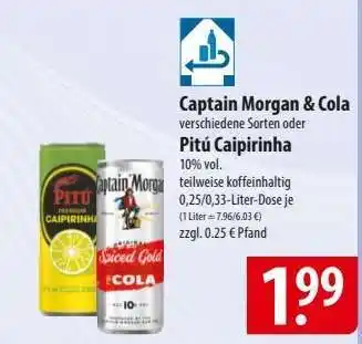 Jetzt im Angebot bei Famila Nord Ost: Captain Morgan & Cola oder Pitú Caipirinha ✅ Aktion gültig vom 12-01 bis 17-01.