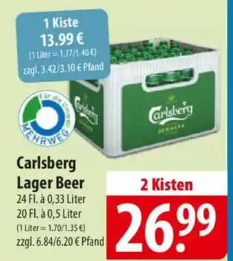 Jetzt im Angebot bei Famila Nord Ost: Carlsberg Lager Beer ✅ Aktion gültig vom 16-02 bis 21-02.