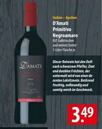 Jetzt im Angebot bei Famila Nord Ost: D'Amati Primitivo Negroamaro ✅ Aktion gültig vom 12-01 bis 17-01.