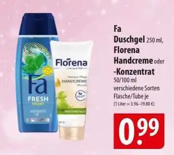 Fa Duschgel 250 ml, Florena Handcreme oder -Konzentrat 50/100 ml