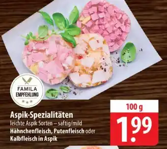 FAMILA EMPFEHLUNG Aspik-Spezialitäten Hähnchenfleisch, Putenfleisch oder Kalbfleisch in Aspik Aktion bei Famila Nord Ost