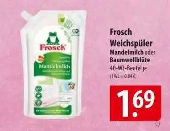 Jetzt im Angebot bei Famila Nord Ost: Frosch Weichspüler Mandelmilch oder Baumwollblüte ✅ Aktion gültig vom 29-12 bis 3-01.