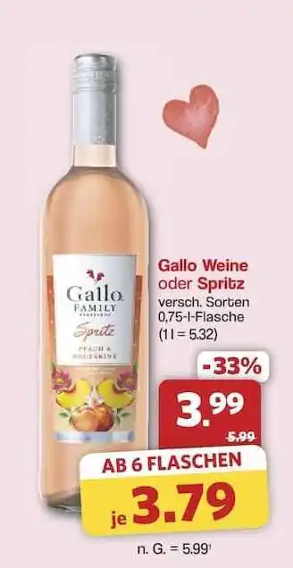 Jetzt im Angebot bei Famila Nord Ost: Gallo Weine oder Sprütz ✅ Aktion gültig vom 9-02 bis 14-02.