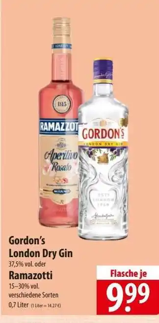 Jetzt im Angebot bei Famila Nord Ost: Gordon’s London Dry Gin oder Ramazotti ✅ Aktion gültig vom 19-01 bis 24-01.