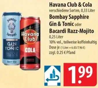 Havana Club & Cola, Bombay Sapphire, Gin & Tonic oder Bacardi Razz-Mojito Angebote und Online Aktionen direkt aus dem aktuellen Famila Nord Ost Angebot