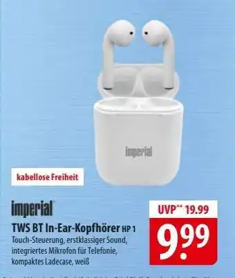 Jetzt im Angebot bei Famila Nord Ost: imperial TWS BT In-Ear-Kopfhörer HP 1 ✅ Aktion gültig vom 26-01 bis 31-01.