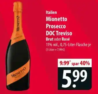Jetzt im Angebot bei Famila Nord Ost: Italien Mionetto Prosecco DOC Treviso Brut oder Rosé ✅ Aktion gültig vom 9-02 bis 14-02.