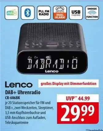 Jetzt im Angebot bei Famila Nord Ost: Lenco DAB+ Uhrenradio CR-606BK ✅ Aktion gültig vom 26-01 bis 31-01.