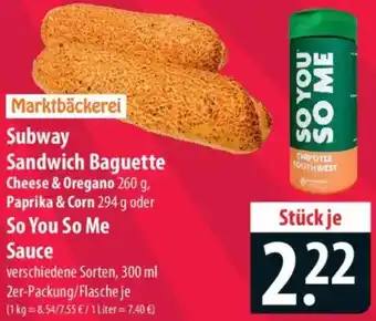 Marktbäckerei Subway Sandwich Baguette oder So You So Me Sauce