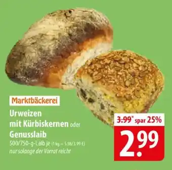 Marktbäckerei Urweizen mit Kürbiskernen oder Genusslaib Angebote und Aktionen bei Famila Nord Ost