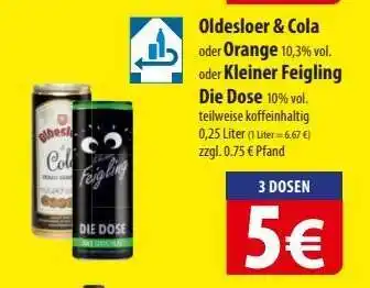 Jetzt im Angebot bei Famila Nord Ost: Oldesloer & Cola oder Orange oder Kleiner Feigling Die Dose ✅ Aktion gültig vom 5-01 bis 10-01.