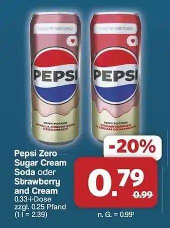 Pepsi Zero Sugar Cream Soda oder Strawberry and Cream Angebote und Online Aktionen direkt aus dem aktuellen Famila Nord Ost Angebot