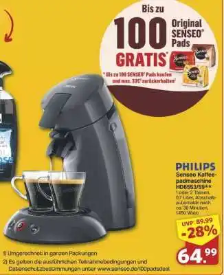 Jetzt im Angebot bei Famila Nord Ost: PHILIPS Senseo Kaffeemaschine HD6553/59 ✅ Aktion gültig vom 26-01 bis 31-01.