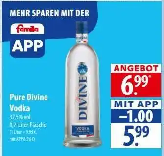 Jetzt im Angebot bei Famila Nord Ost: Pure Divine Vodka ✅ Aktion gültig vom 5-01 bis 10-01.