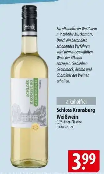 Jetzt im Angebot bei Famila Nord Ost: Schloss Kronsburg Weißwein ✅ Aktion gültig vom 5-01 bis 10-01.