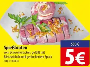 Das Angebot ist in verschiedenen Geschäften erhältlich. Schauen Sie sich alle Produkte an, um das günstigste Spießbraten zu ergattern. Wenn Sie gerne nachschauen möchten, ob der Artikel woanders noch günstiger ist, werfen Sie einen Blick auf die Kategorie 'Supermärkte'. Möglicherweise sind diese Angebote auch interessant für Sie: Spießbraten, Spießbraten & SCHWAMM Spießbraten.