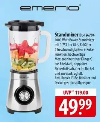 Das Angebot ist in verschiedenen Geschäften erhältlich. Schauen Sie sich alle Produkte an, um das günstigste Standmixer BL-126794 zu ergattern. Wenn Sie gerne nachschauen möchten, ob der Artikel woanders noch günstiger ist, werfen Sie einen Blick auf die Kategorie 'Supermärkte'. Möglicherweise sind diese Angebote auch interessant für Sie: emerio Standmixer BL-126794, Standmixer & Silvercrest Standmixer.