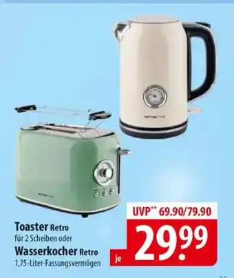Jetzt im Angebot bei Famila Nord Ost: Toaster Retro oder Wasserkocher Retro ✅ Aktion gültig vom 9-02 bis 14-02.