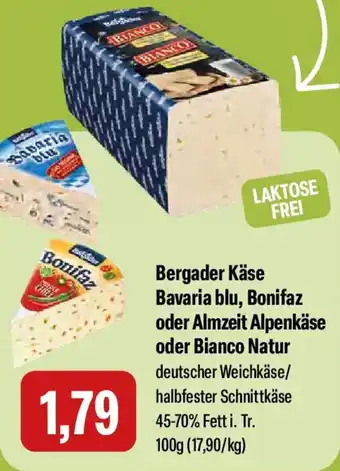 Bergader Käse Bavaria blu, Bonifaz oder Almzeit Alpenkäse oder Bianco Natur Angebote und Aktionen bei Feneberg