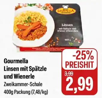 Jetzt im Angebot bei Feneberg: Gourmella Linsen mit Spätzle und Wienerle ✅ Aktion gültig vom 15-01 bis 17-01.