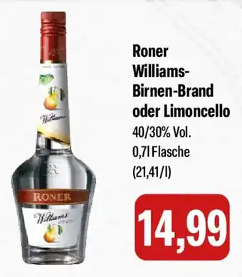 Jetzt im Angebot bei Feneberg: Roner Williams- Birnen-Brand oder Limoncello ✅ Aktion gültig vom 26-02 bis 28-02.