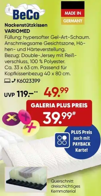 BeCo Nackenstützkissen VARIOMED Aktion bei Galeria