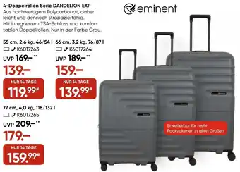 Abgesehen von Eminent 4-Doppelrollen Serie DANDELION EXP, bietet Galeria eine Menge anderer Artikel an. Behalten Sie den wöchentlichen Galeria Prospekt im Blick, um die besten Angebote und Aktionen nicht zu verpassen. Abgesehen von Eminent 4-Doppelrollen Serie DANDELION EXP können Sie weitere, interessante Angebote entdecken: eminent 4-Doppelrollen Serie ANTILA EXP, eminent 4-Doppelrollen Serie ARMOR & Travelite 4-Doppelrollen Serie PRIIMA.