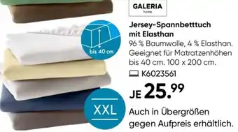 Jetzt im Angebot bei Galeria: GALERIA home Jersey-Spannbetttuch mit Elasthan ✅ Aktion gültig vom 4-03 bis 17-03.