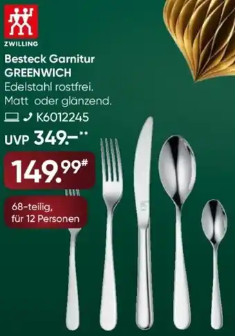 Jetzt im Angebot bei Galeria: ZWILLING Besteck Garnitur GREENWICH ✅ Aktion gültig vom 17-12 bis 23-12.