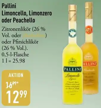 Jetzt im Angebot bei Galeria Markthalle: Pallini Limoncello, Limonzero oder Peachello ✅ Aktion gültig vom 27-12 bis 5-01.