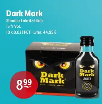 Jetzt im Angebot bei Getränke Hoffmann: Dark Mark Shooter Lakritz-Likör ✅ Aktion gültig vom 9-02 bis 14-02.