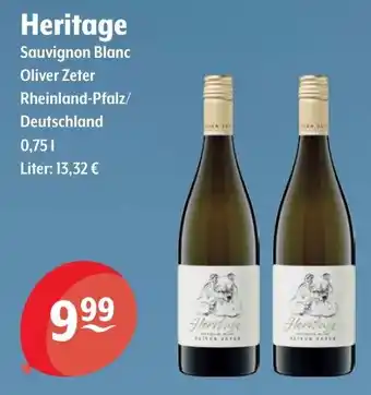 Heritage Sauvignon Blanc Oliver Zeter-Angebot bei Getränke Hoffmann