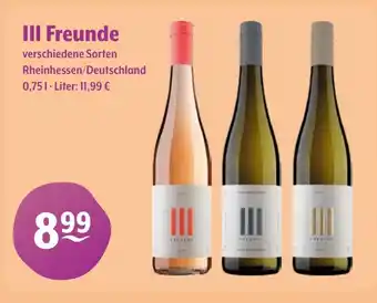 Das Angebot ist in verschiedenen Geschäften erhältlich. Schauen Sie sich alle Produkte an, um das günstigste III Freunde zu ergattern. Wenn Sie gerne nachschauen möchten, ob der Artikel woanders noch günstiger ist, werfen Sie einen Blick auf die Kategorie 'Getränkehandel'. Möglicherweise sind diese Angebote auch interessant für Sie: III Freunde Rebsortenweine, dollsworld Badepuppen- Freunde 3403 & Teichnebler Mystmaker III.