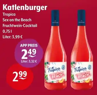 Jetzt im Angebot bei Getränke Hoffmann: Katlenburger Tropica, Sex on the Beach Fruchtwein-Cocktail ✅ Aktion gültig vom 13-04 bis 18-04.