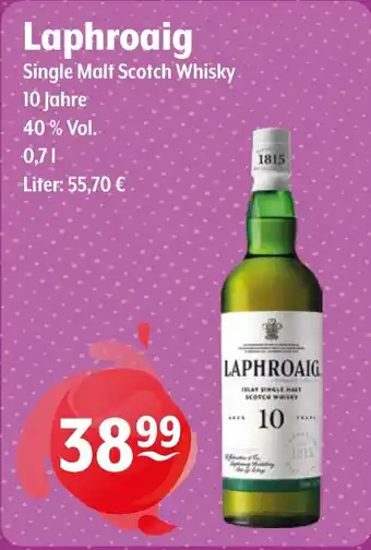 Den Preis von dem Laphroaig Single Malt Scotch Whisky 10 Jahre finden Sie auch oben auf der Website, zusammen mit dem Datum, ab wann das Angebot erhältlich ist. Sie können die Preise auch im aktuellen Getränke Hoffmann Prospekt nachhalten oder auf der Getränke Hoffmann Website nachschauen. Durch die Angebote können Sie sicher sein, die Getränke Hoffmann Produkte zum absoluten Bestpreis zu ergattern.