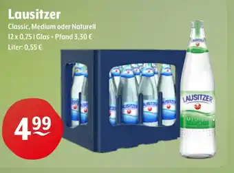 Jetzt im Angebot bei Getränke Hoffmann: Lausitzer Classic, Medium oder Naturell ✅ Aktion gültig vom 13-04 bis 18-04.