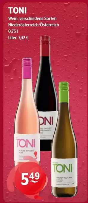 TONI Wein, verschiedene Sorten Angebote und Aktionen bei Getränke Hoffmann