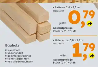 ■ Nadelholz unbehandelt ■kammergetrocknet ■feiner Sägeschnitt ■verschiedene Längen Rahmen ca. 5.8*3.8 cm je lfm Gesamtpreis je Stück (2 m) 3,58