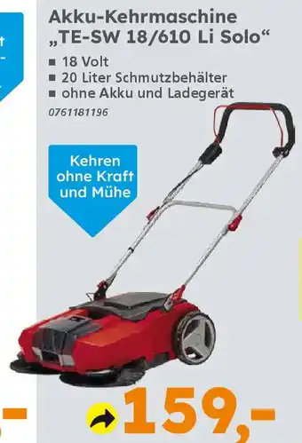 Einhell Akku-Kehrmaschine ,TE-SW 18/610 Li Solo"-Rabatt bei Globus Baumarkt