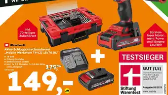 Jetzt im Angebot bei Globus Baumarkt: Einhell akku-schlagbohrschrauberset mobile werkstatt tp-cd 18/70 bl ✅ Aktion gültig vom 21-12 bis 27-12.
